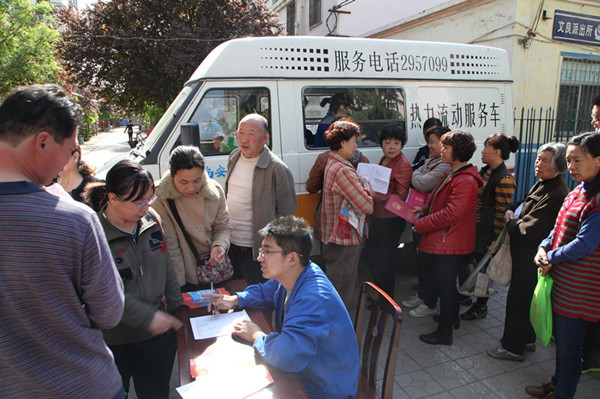 公司服務(wù)人員在該小區(qū)院內(nèi),一邊在流動服務(wù)車內(nèi)為用戶辦理居民采暖證,一邊在咨詢服務(wù)臺為用戶提供專業(yè)的供熱咨詢服務(wù),一邊在供熱宣傳展板前講解供熱政策,一邊向用戶發(fā)放供熱常識宣傳頁。整個服務(wù)現(xiàn)場氣氛熱烈、井然有序,深受小區(qū)居民和用戶的歡迎和贊揚。